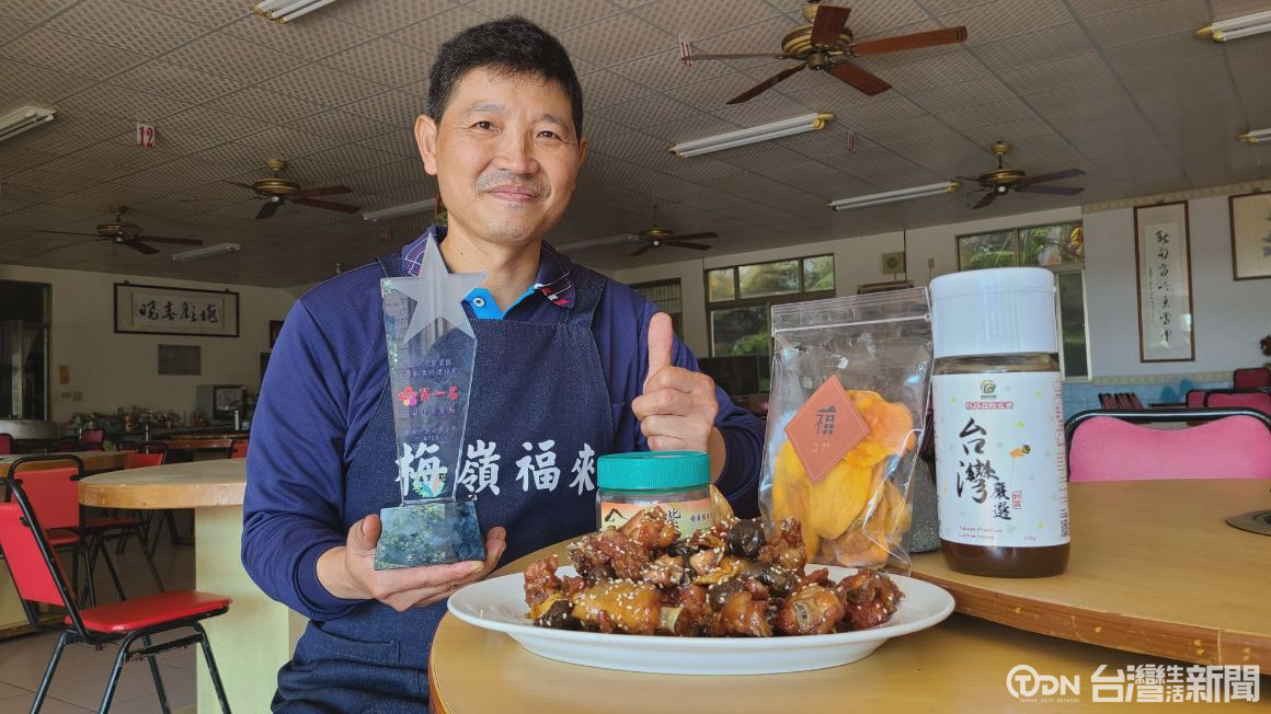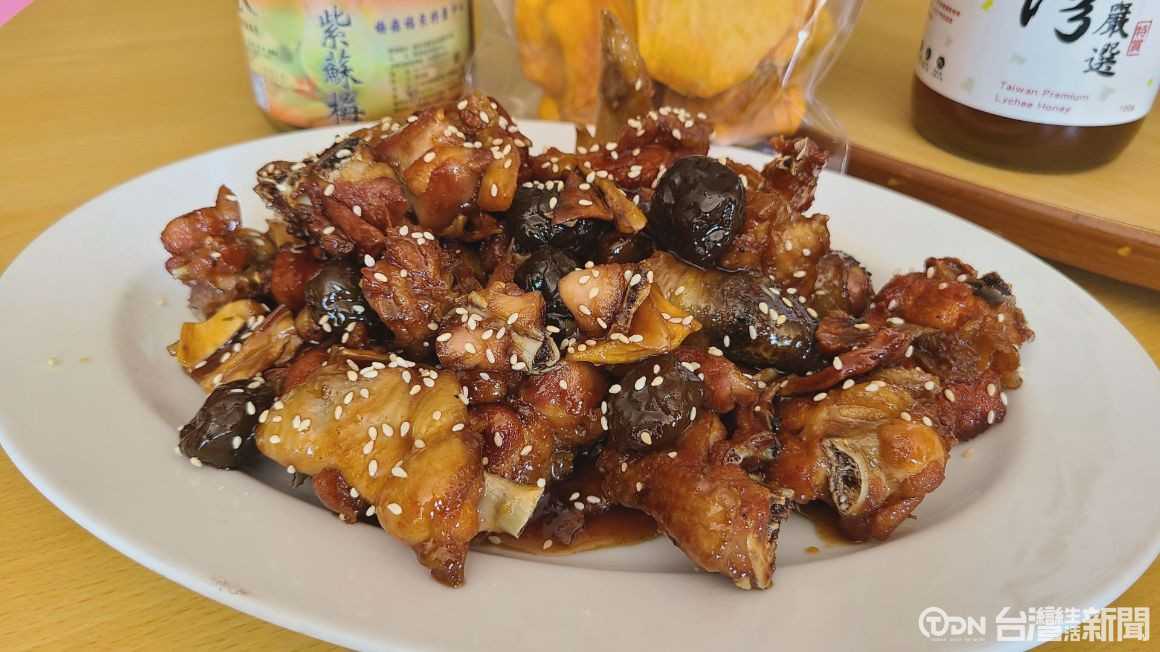 ▲110年度梅嶺梅子創意料理競賽,評比第一名是香芒蜜梅雞/記者 蕭建緯攝