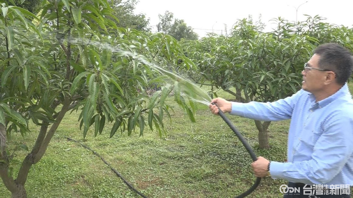 ▲果園主人郭炳宏加強澆水跟施肥,讓果樹可以充足吸收養分/記者 蕭建緯攝