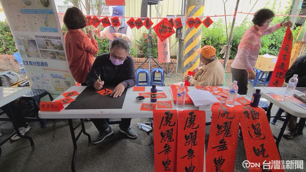 ▲歲末迎新活動南化區公所邀知名書法家,現場寫春聯讓民眾免費領取/記者 蕭建緯攝