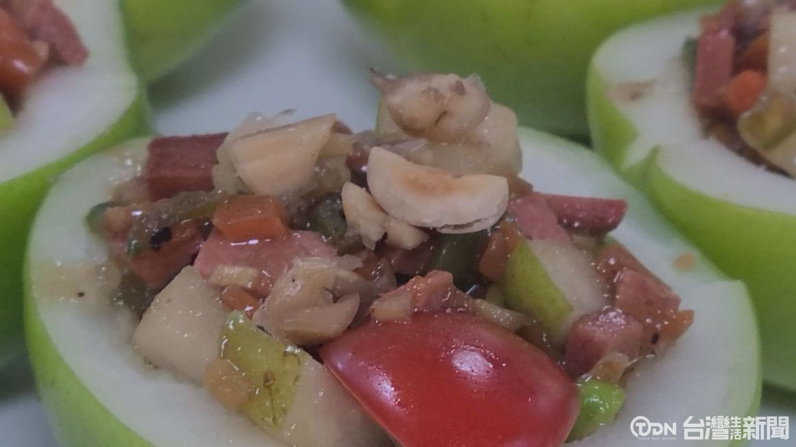 ▲這道蜜棗紅梅利用水果本身甜味配其他食材做變化,可以品嘗水果的鮮度與脆度/記者 蕭建緯攝