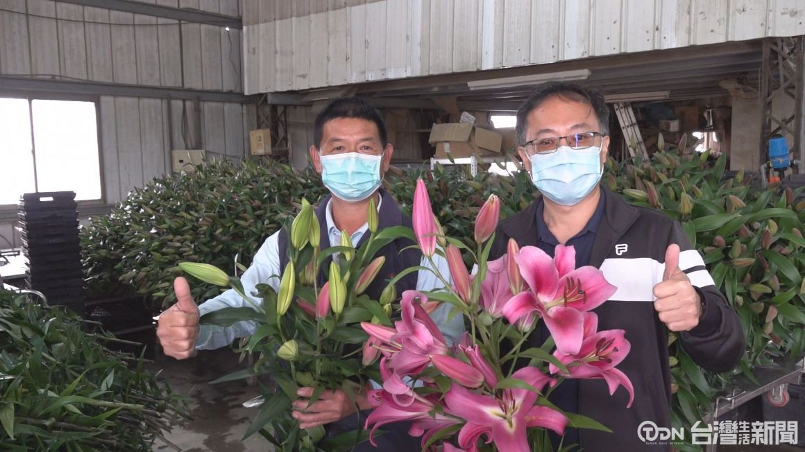 農場員工忙著出貨,將新鮮採收下的百合,運送到台北果菜市場拍賣,國內六成的百合切花都來自后里,今年在好氣候的加持下,花況新鮮,市場買氣不錯,物流塞車,到農曆年只能往北部送。