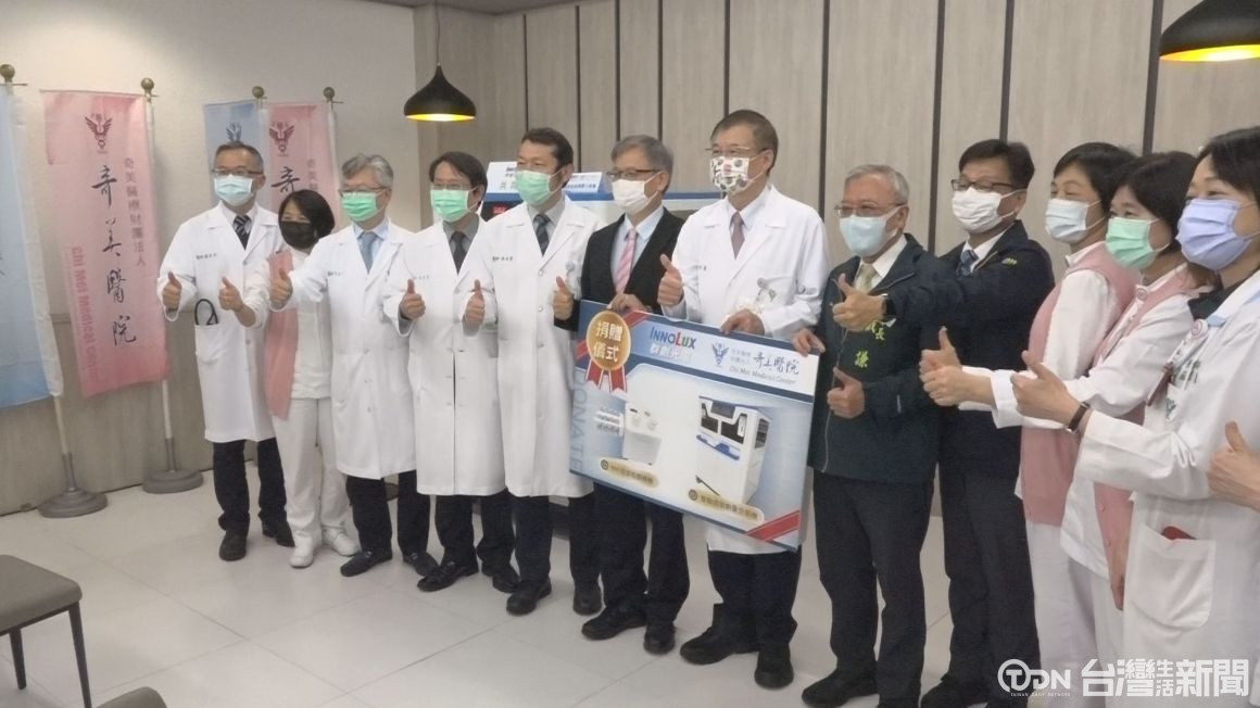 ▲在臺南市副市長戴謙見證下,光電企業將這套自動化設備捐贈給奇美醫學中心使用/記者 蕭建緯攝