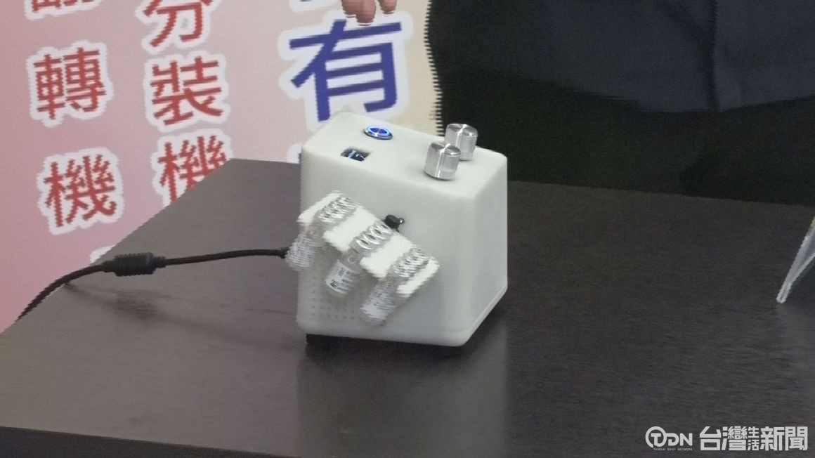 ▲奇美醫學中心與光電企業共同研發BNT疫苗瓶翻轉機,可減少護理師重複搖晃動作/記者 蕭健緯攝