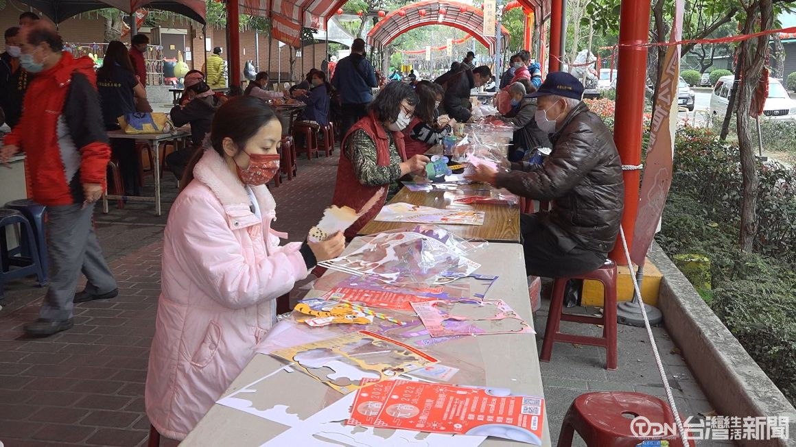 ▲元宵節活動讓民眾動手組花燈,組好就能換摸彩券來參加抽獎/記者 張瑋玲 攝