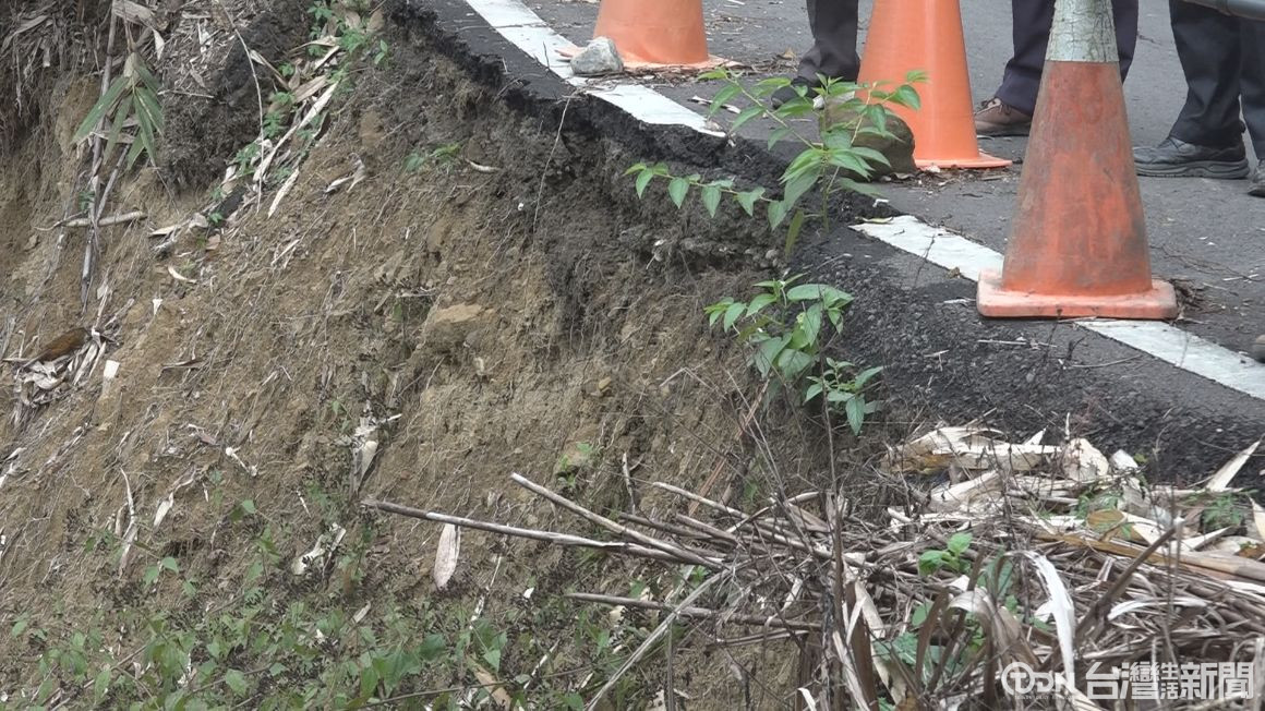 ▲圖為中寮鄉福盛村福山巷民和產業道路,邊波不斷被雨水沖刷,已影響到用路安全/記者林妤昕攝