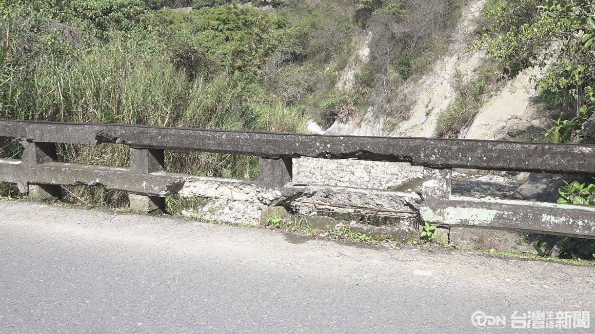 ▲霧峰區北坑二號橋,橋面老舊、鋼筋裸露,橋面寬度也較窄,已造成行車危險/記者 張之穎攝