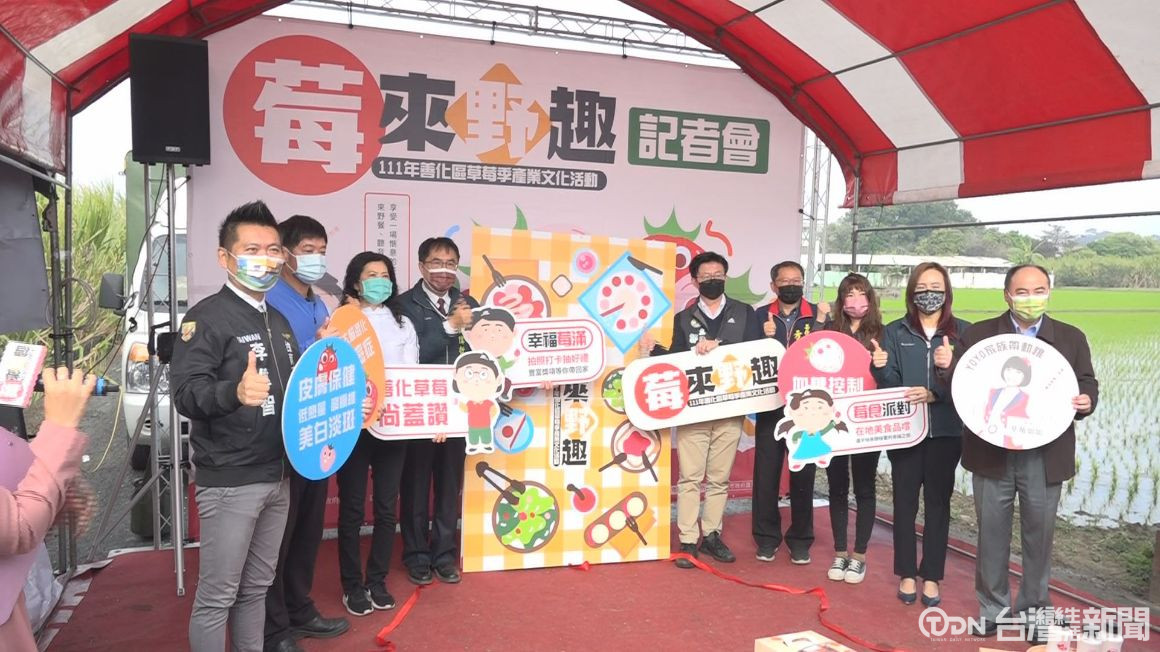 ▲2022善化草莓季將在2月26日正式開始,邀請市長黃偉哲等人共同進行揭幕儀式/記者 蕭建緯攝