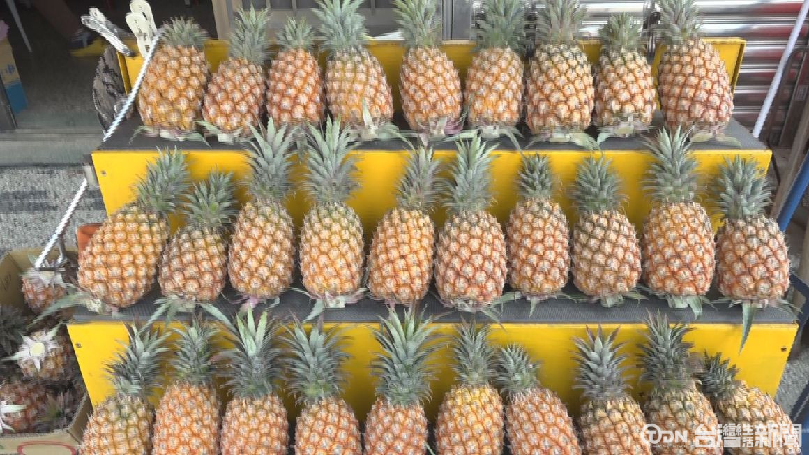 ▲臺南市關廟區金鑽鳳梨今年遇上寒流緩慢生長,使鳳梨成熟期延後及上市/記者 蕭建緯攝
