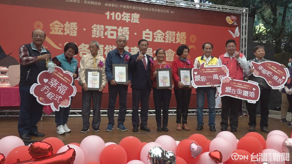 南投縣有29對白金鑽石婚楷模、349對鑽石婚楷模、698對金婚楷模,竹山鎮83 歲鑽石婚楷模表示,互相體諒,才能維持婚姻,退休在社區參加活動,活到老,學到老,才會健康長壽。