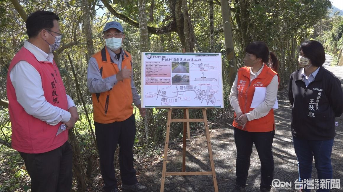 ▲行政院中部辦公室執行長蔡培慧爭取農委會水保局350萬經費,改善魚池鄉新城村香茶巷農路交通。/記者 范宏坤 攝