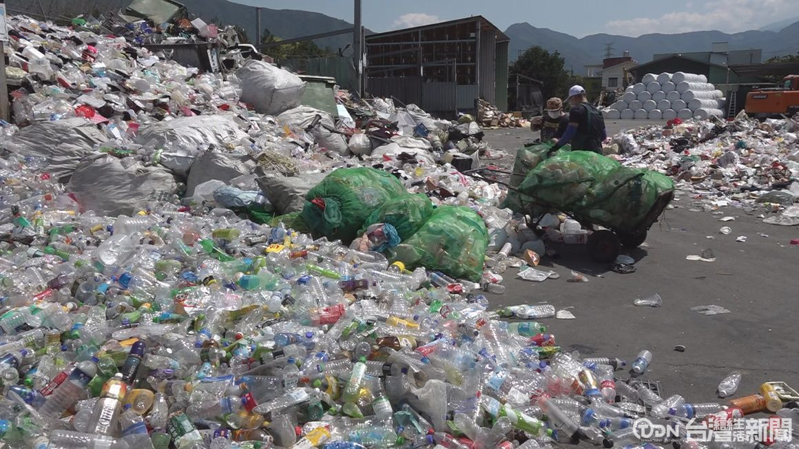 ▲因為疫情的關係,資源回收餐具、保特瓶數量大增/記者 范宏坤 攝