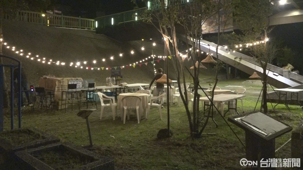 ▲由水里青農申請活化閒置空間計畫在水雲橋專為遊客打造了夜間休閒好去處/記者金芸亘攝