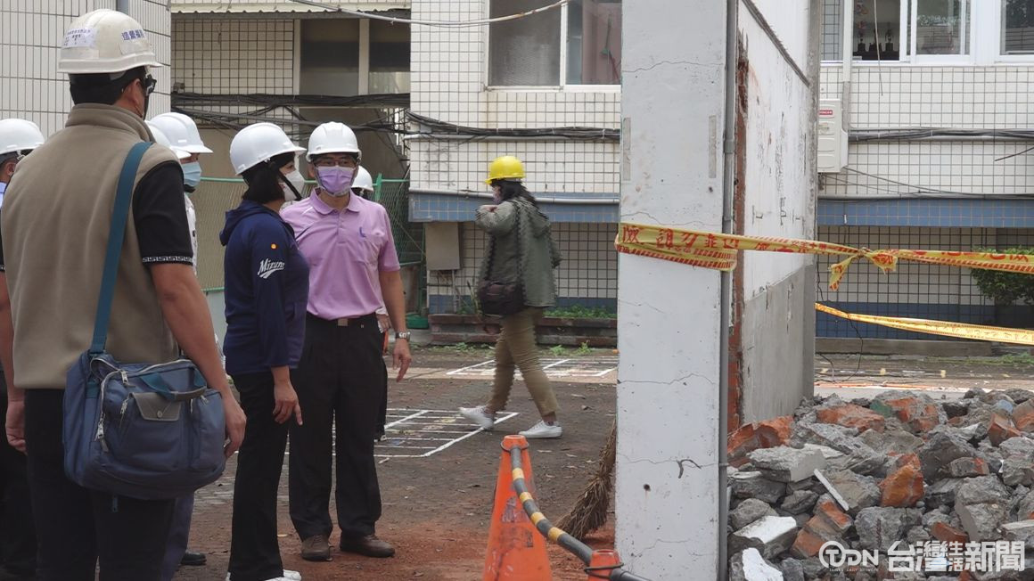 ▲口湖鄉文光國小,配合擴建中央廚房政策,將活動中心做為臨時配膳中心,恐造成環境汙損加上年久失修設備老舊,因此校方希望修復改善,雲林縣長張麗善今(21號)到場會勘工程並聽取民眾需求。記者 丁桂慈/攝