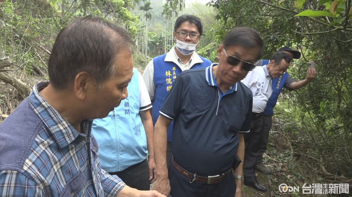 ▲縣長林明溱來到集集鎮和平里鹽水巷會勘路基流失與道路破損情形/記者金芸亘攝