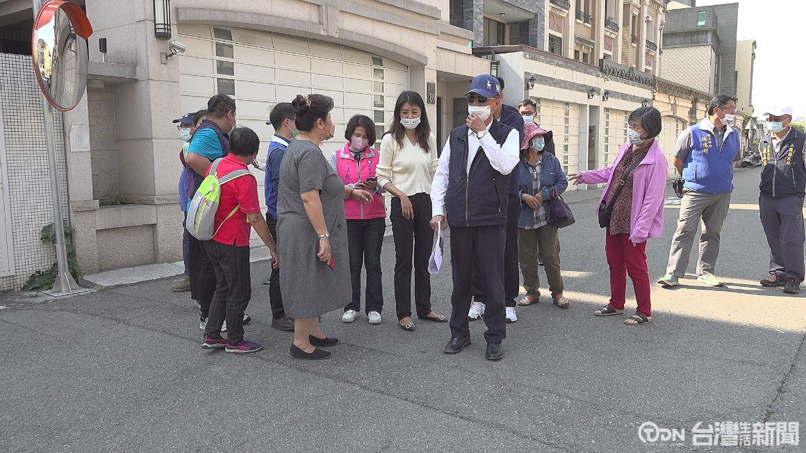 ▲南投縣長林明溱、立委許淑華等人,會勘南投巿營北里道路補丁多情形/記者 熊欣儀 攝