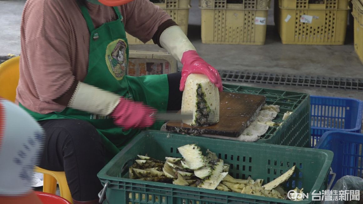 ▲農會加工廠內正在製作今年鳳梨乾