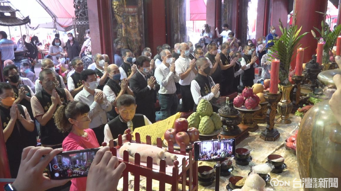 今日農曆3月23日是媽祖聖誕,鹿耳門聖母廟在媽祖殿舉辦壽誕祀宴,由主任委員王增榮擔任主祭,儀式遵循古禮隆重典雅,廟方也在祀宴圓滿結束後,將現場600份壽桃跟壽麵分送給信眾,不到半小時就發送完畢。