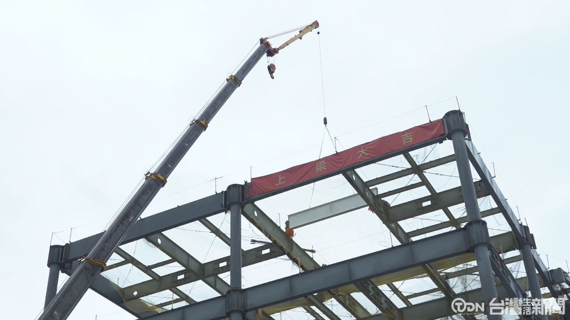 ▲全台首座美術館與圖書館雙館共構的「台中綠美圖」,這天舉行上梁典禮/記者 李晉仰攝