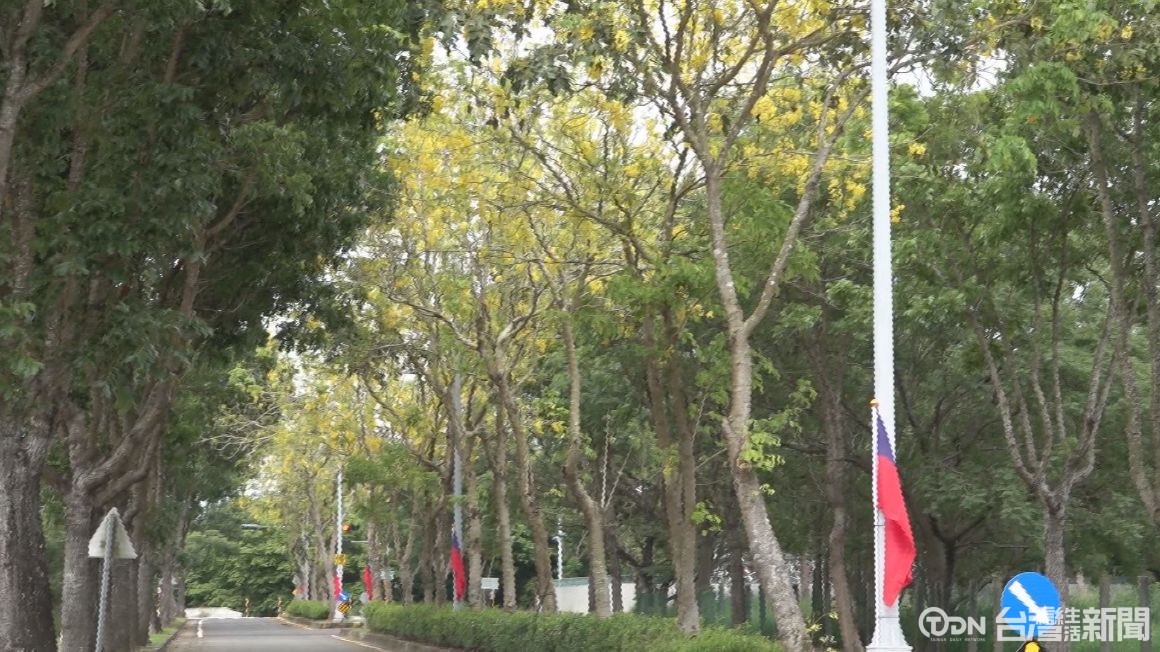 ▲臺南高鐵站周邊的阿勃勒, 目前大約開了3成左右,預估到6月初會有最好的花況/記者 葛家銘攝。