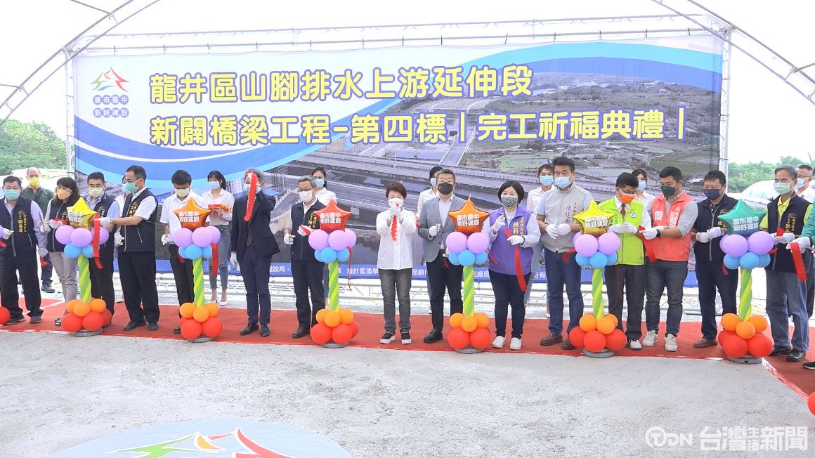 為解決沙鹿和龍井等海線地區的淹水問題,中央與地方合作進行南山截水溝計畫,其中第二期山腳大排上游延伸段新闢橋梁第四標,已順利完成,是相當重要的里程碑。為此市長盧秀燕23號上午,也特別出席完工典禮,並表示,預計年底時,下游既有的山腳大排全數拓寬完成後,就能順利通水,屆時將可大幅改善當地易淹水的問題。