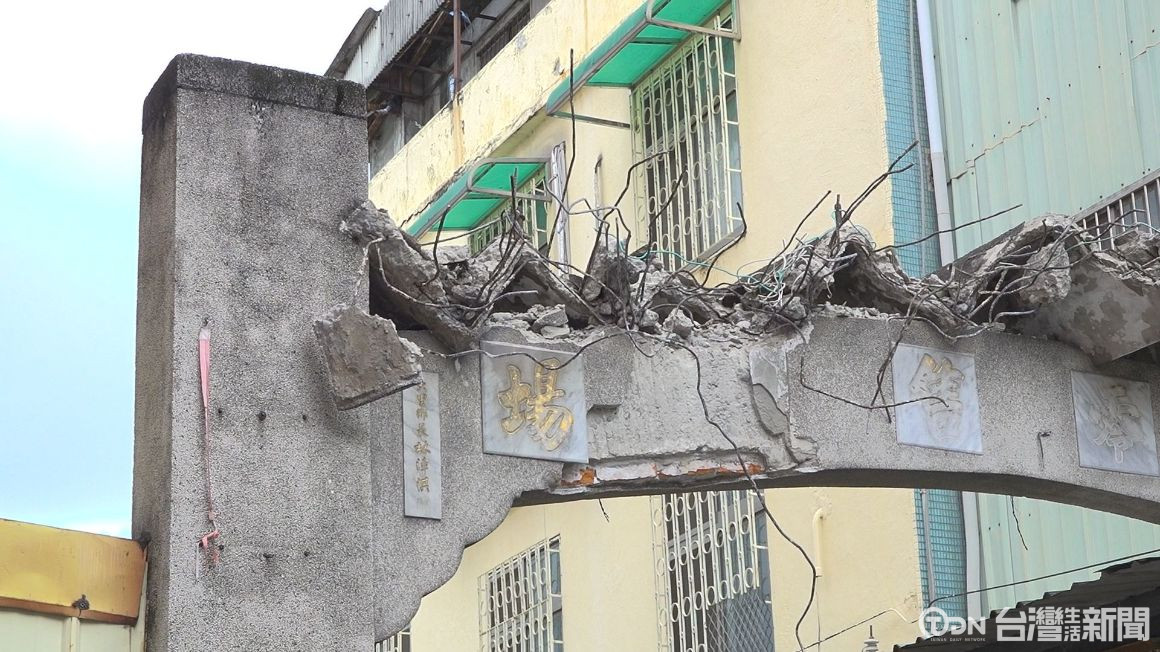 ▲在公共安全與文資標準的考量下,地方希望能保留牌樓/記者 賴秋峰攝