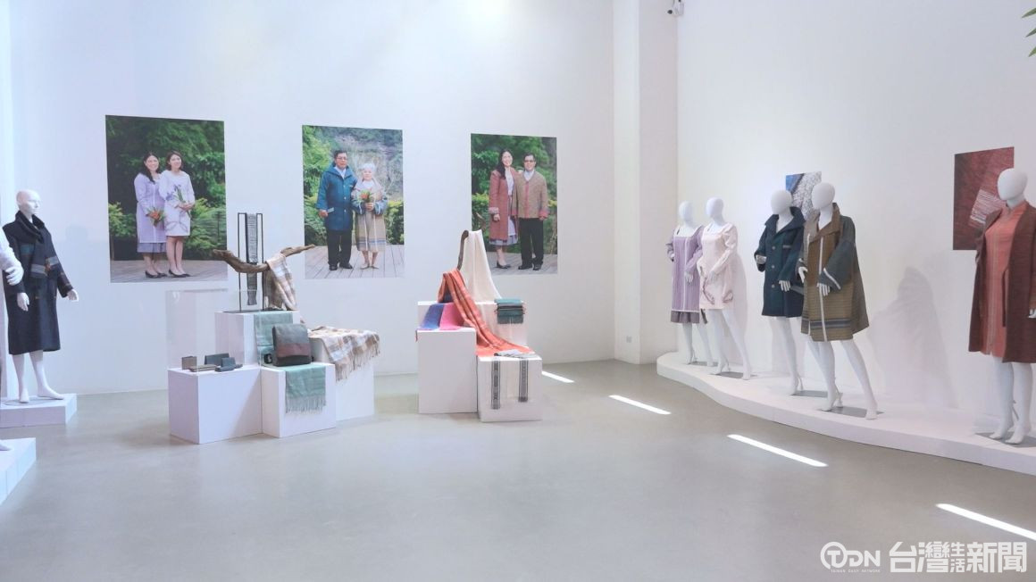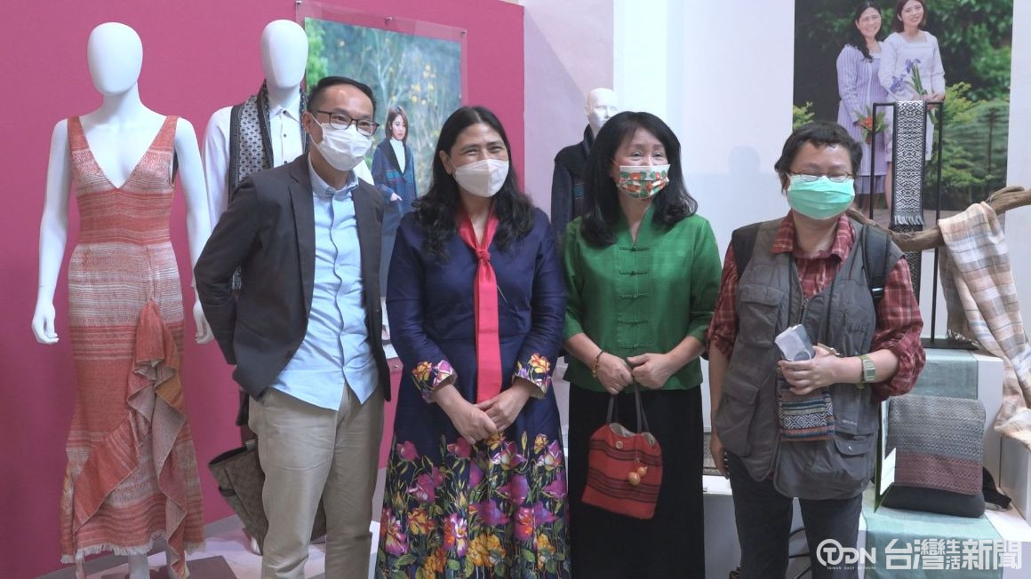 ▲尤瑪‧達陸老師和編織工藝家林淑莉,這次也以婚慶為主題,展出了結合傳統的泰雅現代婚慶服飾/記者 李晉仰攝