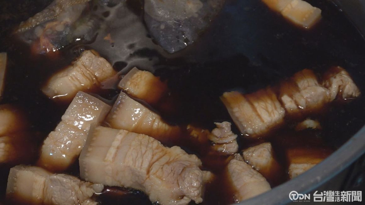 ▲以五花肉和香料包滷製的老滷汁,是紅藜紫米潮州粽的美味靈魂/記者 林佳樺攝