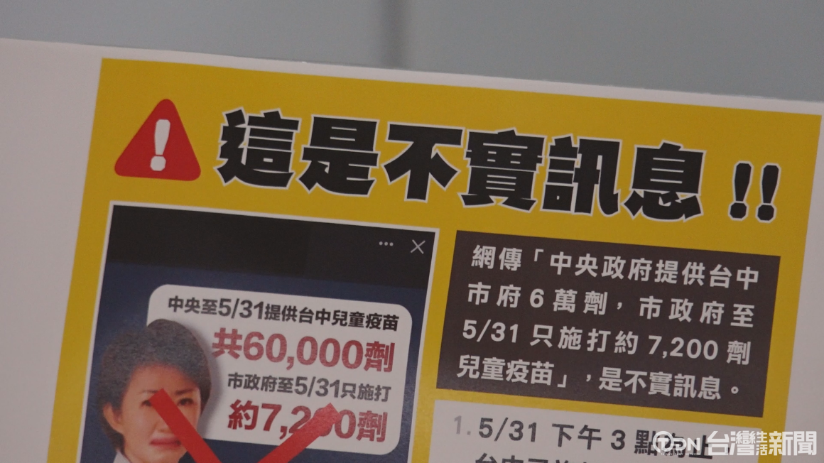 疫情時代各項消息滿天飛,不過有時卻是真假難辨,有網友發梗圖,指稱台中市兒童疫苗目前施打率只打7千多劑,還引得立法院副院長蔡其昌的服務處轉發,對此台中市新聞局長鄭照新出面澄清,這是不實的言論,請民眾不要轉貼,若是「持續傳達錯誤訊息」,恐怕會觸犯傳染病防治法。