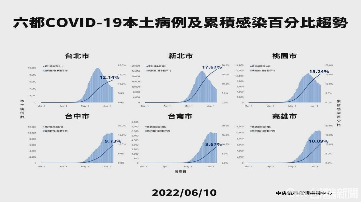 台中市衛生局表示,以中央今公佈的六都確診盛行率來看,歸納出疫情高峰期約3星期,台中和高雄近3個月疫情走勢大致雷同,依照新北經驗判斷,台中市第4波高峰可能出現在13、14日,接著再緩慢下降。