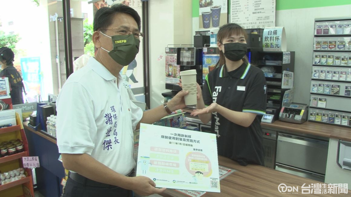 今天7月1日行政院環保署,自備飲料杯省5元的政策正式上路,上午臺南市政府環保局局長 謝世傑,親自到便利商店買飲料實測,對於店家的配合,高度肯定與感謝。