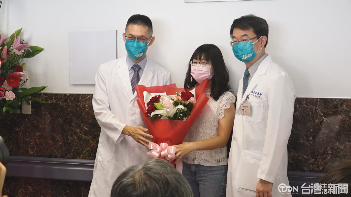 ▲醫師送上鮮花,祝福患者抗癌順利成功/記者 楊宗桓攝