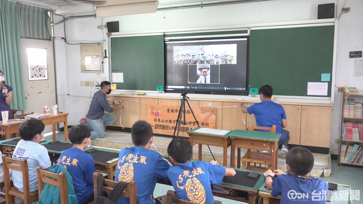 ▲臺南市安南區和順國小跟日本山口縣万倉小學,透過視訊,兩校進行國際教育交流活動/記者 蘇英豪攝。