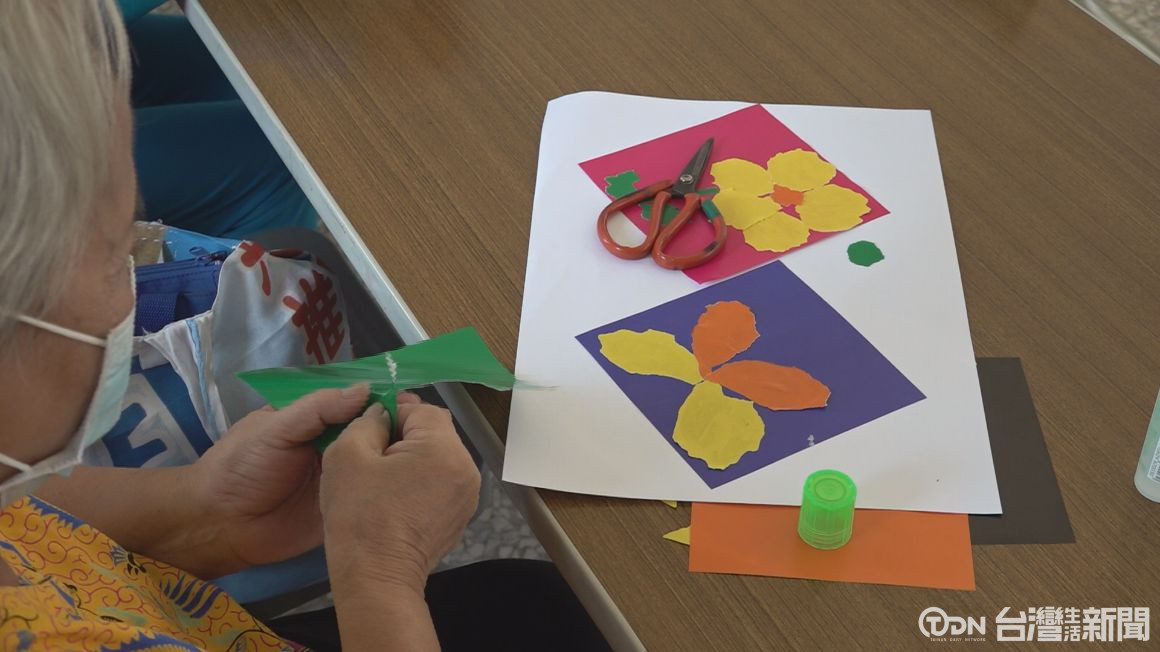 ▲埔里鎮蝴蝶生態豐富,老師特別規劃彩蝶人生的藝術創作,讓長輩透過剪紙、撕紙、黏貼的簡單動作,動動手,也動動腦/記者 范宏坤 攝