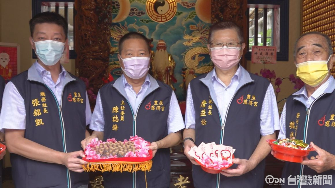 廟方人員為未婚男女掛上紅繩,祝福他們在月老牽線下,能加速脫單,找到好對象,因應少子化結婚率低,豐原慈濟宮扮起現代月老,點鴛鴦譜。