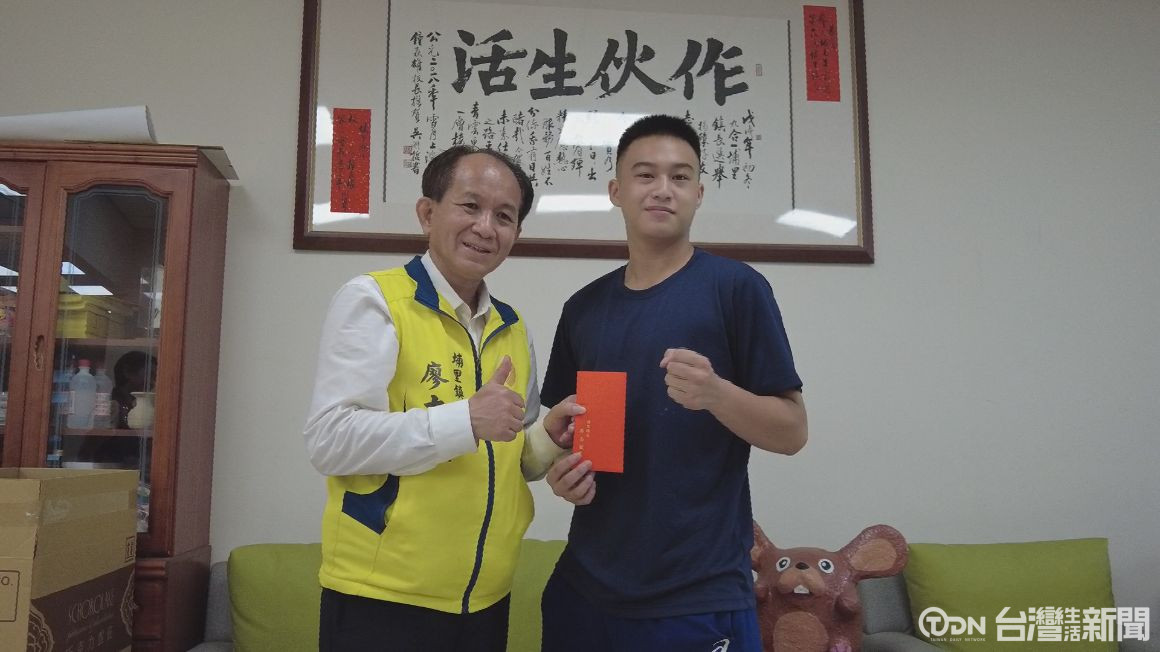 ▲埔里鎮長廖志城表揚總統教育獎得主張佑銘/記者 范宏坤 攝