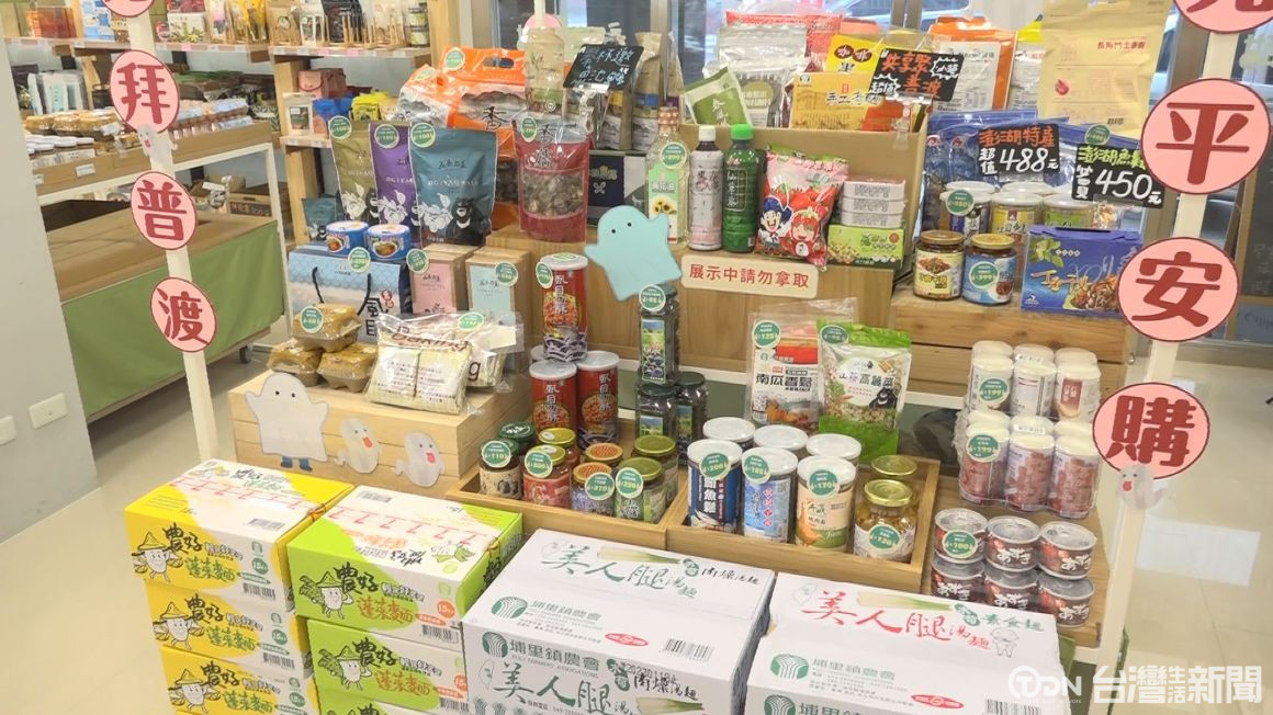 ▲臺南市永康區農會集合全國42間各地農會,規劃中元祭拜專區跟平安專區讓民眾選購/記者 蕭建緯攝