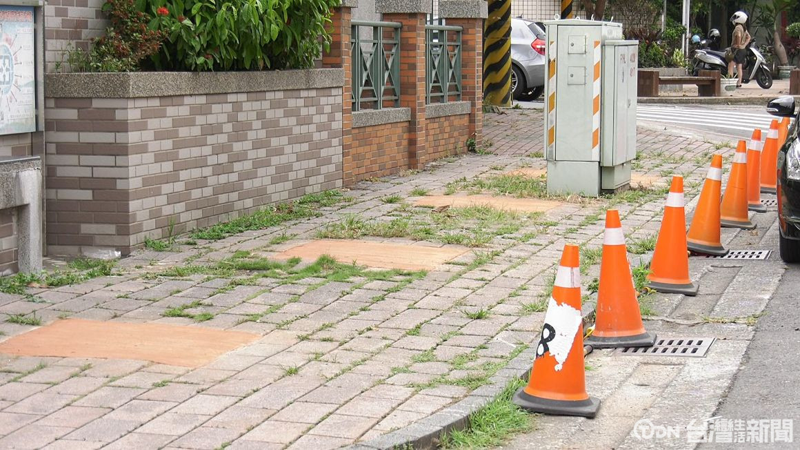 ▲一旁人行道僅有3公尺寬,卻出現鋪面雜亂等狀況/記者 陳柏翰攝