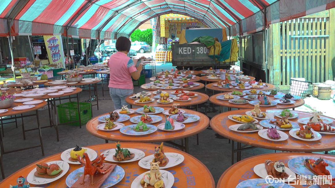 現場也規劃看桌的祭祀擺設,讓供桌上的祭品看起來更豐盛,在遵守防疫規定下,讓一年一度的中元普渡圓滿順利。