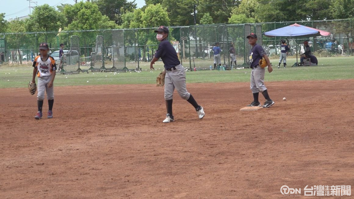 ▲小朋友不畏酷暑認真的練習打擊/記者 陳昭安攝