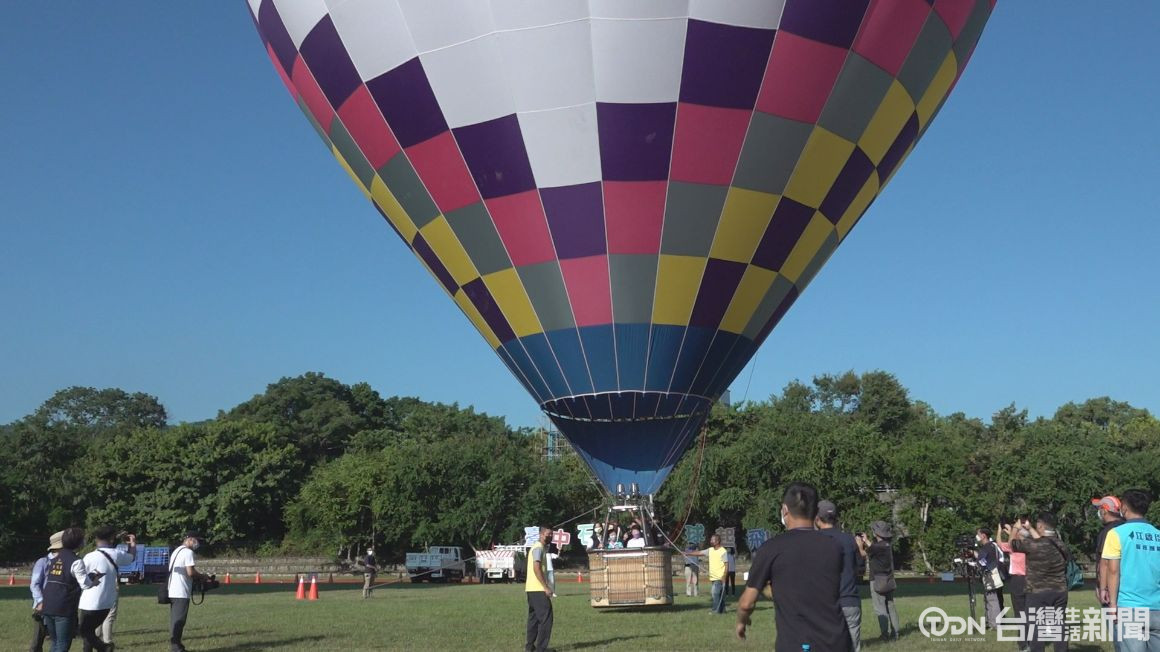 ▲熱氣球繫留體驗是以繩索固定熱氣球定點升降,讓民眾在高空中飽覽美麗的山城景色/記者 陳昭安攝