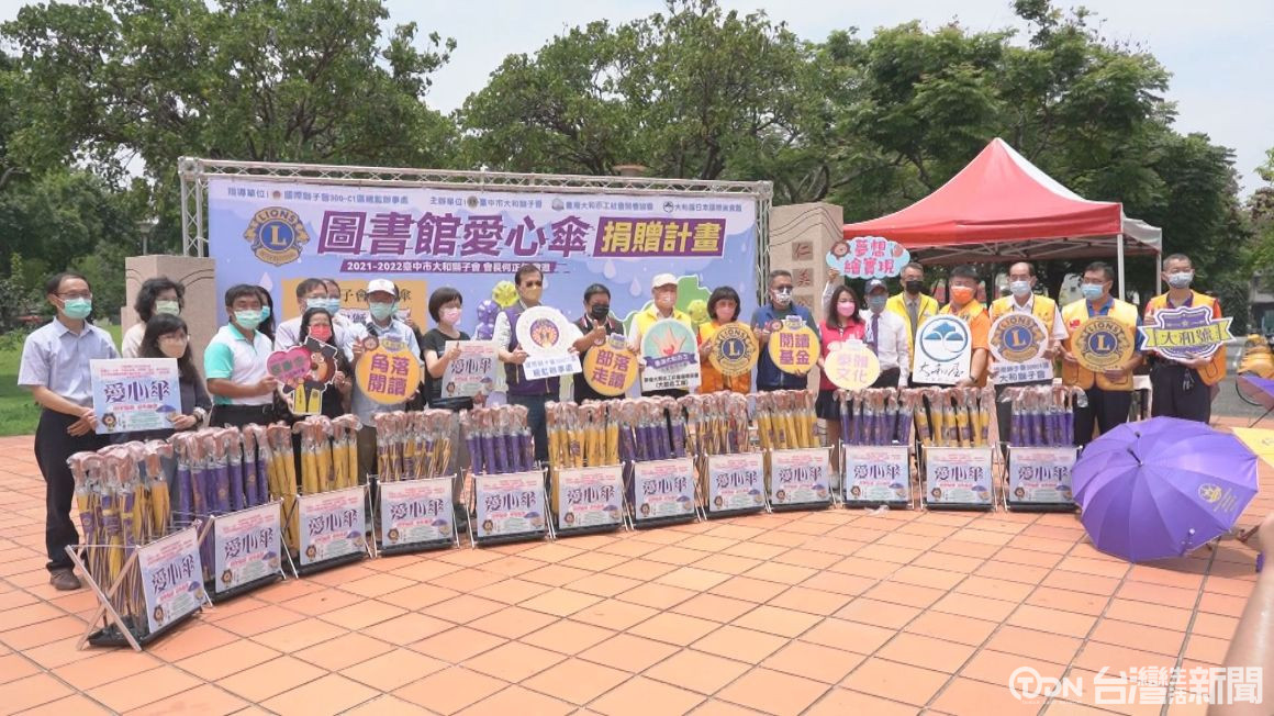 響應國際獅子會總會百萬愛心傘捐贈活動,大和獅子會這天也和一家餐飲集團,共同訂購5000把,做為社會服務使用,要捐贈給大甲溪沿岸的圖書館來使用,讓愛與傘能夠永續循環。