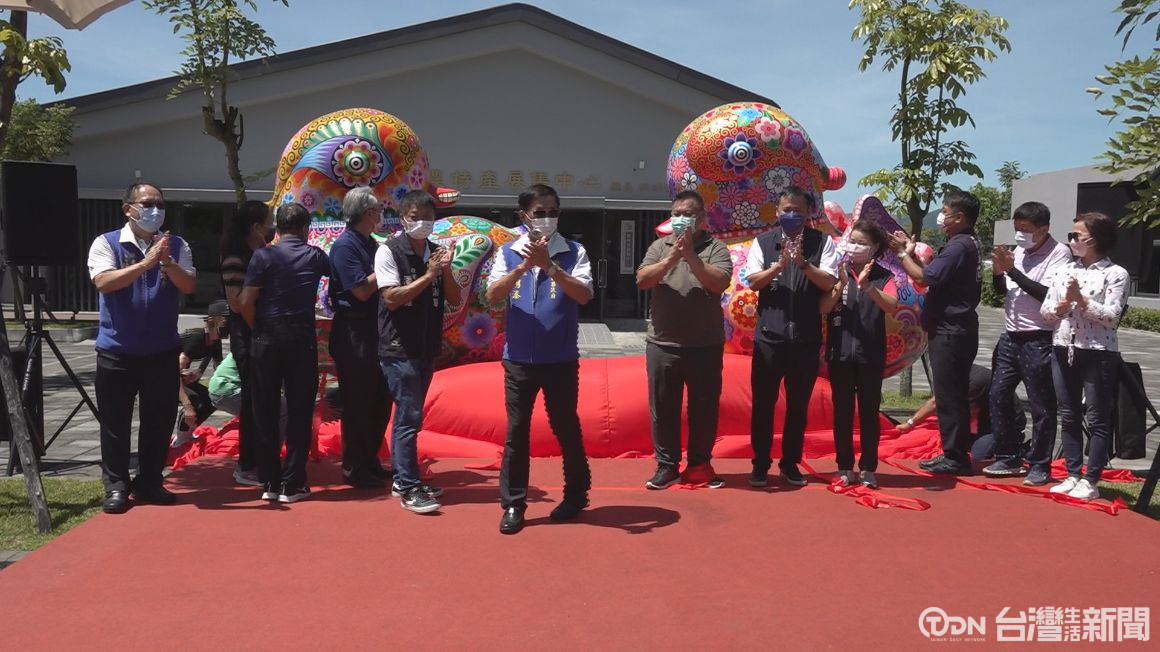 ▲南投縣長林明溱參加國際藝術展品鴛鴦啟用儀式/記者 范宏坤 攝