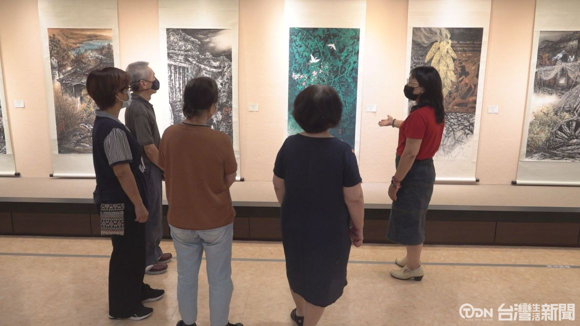 ▲水墨畫家張惠華,最近在葫蘆墩文化中心展出以「澎湖咾咕石古厝」和「九份老屋」的創作/記者 李晉仰攝