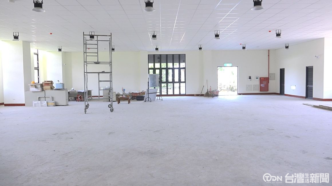 空蕩蕩宛的建築內部,隨處都能看到各種工地器具和油漆等推放在一旁,這是最近才剛完工的后里國中活動中心,由於3年前因為營建物價指數上漲,流標多次,不得已只好採減項發包,先完成主體建築,但內部設施卻還未有著落。