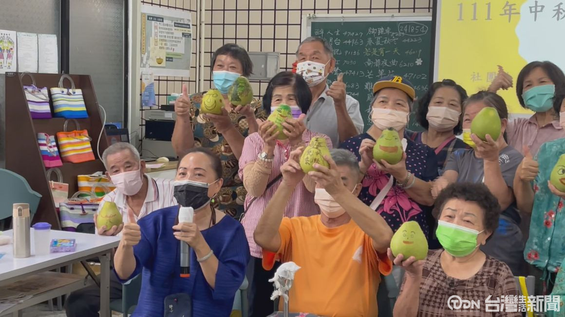 手拿自己設計彩繪好的柚子,玉映社區的長輩就算面上掛著口罩,也能感受大家歡喜的表情,長輩很感謝主辦單位的用心舉辦,讓他們提早來歡慶中秋節。
