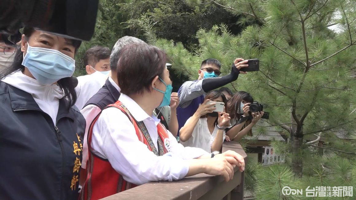 市長盧秀燕開心的問候民眾,他們是特別前來谷關遊玩,而這一處吊橋整修完工後,讓不少民眾多一處欣賞谷關美景的好去處。