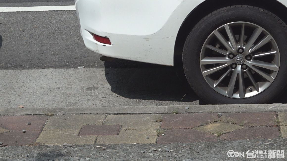 ▲路段未劃設紅線,車輛長期停放堵住出入口/記者 張瑋玲攝