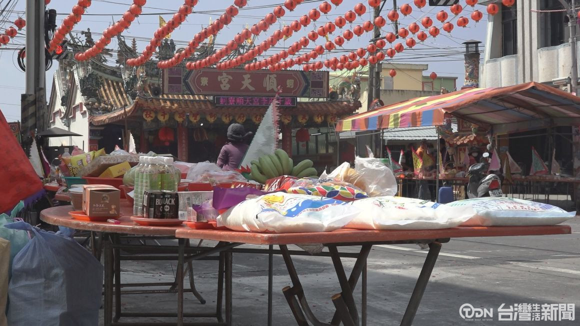 ▲每年農曆八月十五,蚵寮村的民眾準備供品和香案,迎接伍府千歲的到來。記者林虹伯/攝