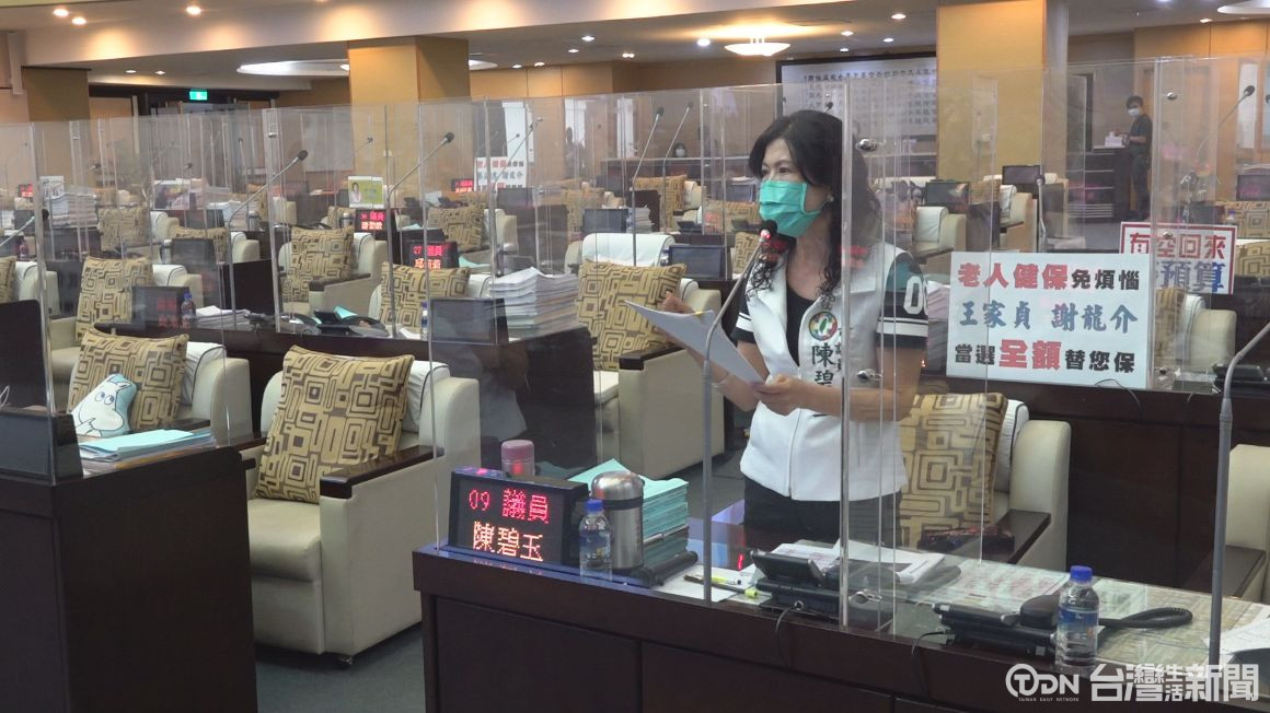 ▲臺南市議員陳碧玉在總質詢表達肯定臺南市長黃偉哲得到超過8成的首長滿意度拿下金獎,也希望繼續延續市民的幸福跟光榮感/記者 蘇英豪攝。