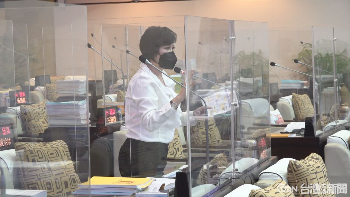 ▲臺南市議員林燕祝在議會總質詢,以充實警察裝備跟警力,向市府建議動用第二預備金,建立AI智慧巡防系統/記者 蘇英豪攝。